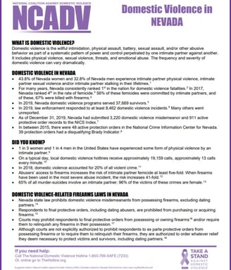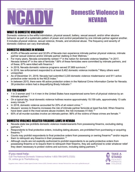 43.8% of Nevada women and 32.8% of Nevada men experience intimate partner physical violence, intimate partner sexual violence and/or intimate partner stalking in their lifetimes.